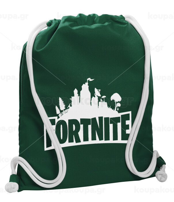 Fortnite, Τσάντα πλάτης πουγκί GYMBAG BOTTLE GREEN, με τσέπη (40x48cm) & χονδρά λευκά κορδόνια