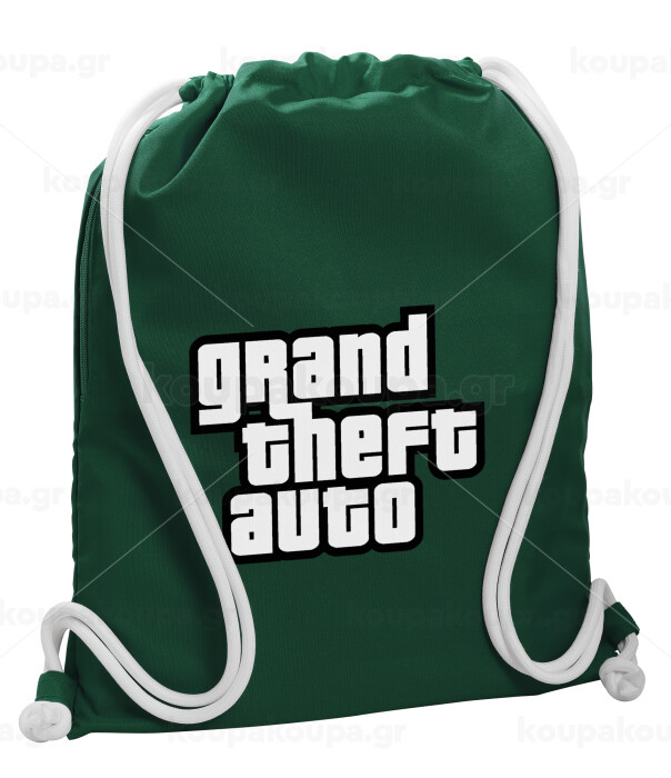 GTA (grand theft auto), Τσάντα πλάτης πουγκί GYMBAG BOTTLE GREEN, με τσέπη (40x48cm) & χονδρά λευκά κορδόνια