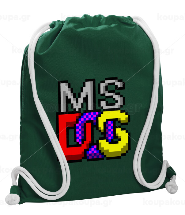 MsDos, Τσάντα πλάτης πουγκί GYMBAG BOTTLE GREEN, με τσέπη (40x48cm) & χονδρά λευκά κορδόνια