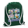 Labubu, Τσάντα πλάτης πουγκί GYMBAG BOTTLE GREEN, με τσέπη (40x48cm) & χονδρά λευκά κορδόνια