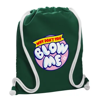 Why Don't You Blow Me Funny, Τσάντα πλάτης πουγκί GYMBAG BOTTLE GREEN, με τσέπη (40x48cm) & χονδρά λευκά κορδόνια