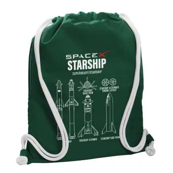 Space X, Τσάντα πλάτης πουγκί GYMBAG BOTTLE GREEN, με τσέπη (40x48cm) & χονδρά λευκά κορδόνια