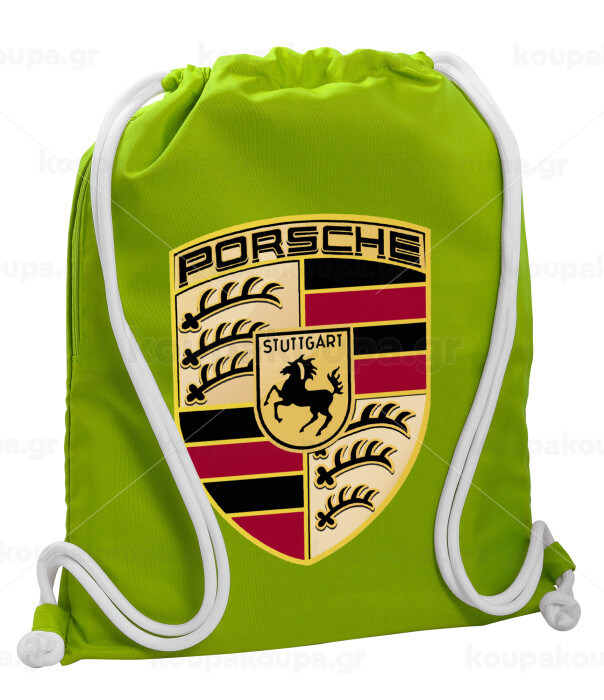 Porsche, Τσάντα πλάτης πουγκί GYMBAG LIME GREEN, με τσέπη (40x48cm) & χονδρά κορδόνια