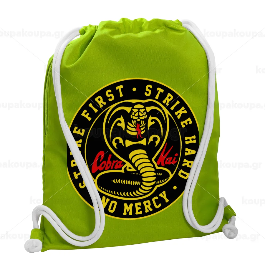 cobra kai strike first dojo, Τσάντα πλάτης πουγκί GYMBAG LIME GREEN, με τσέπη (40x48cm) & χονδρά κορδόνια