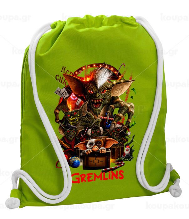 Gremlins, Τσάντα πλάτης πουγκί GYMBAG LIME GREEN, με τσέπη (40x48cm) & χονδρά κορδόνια