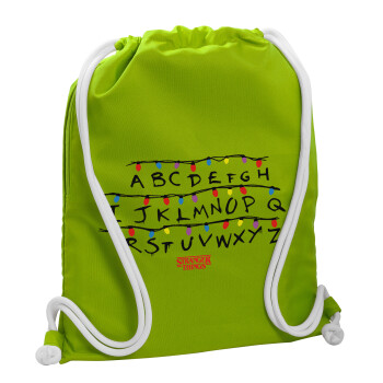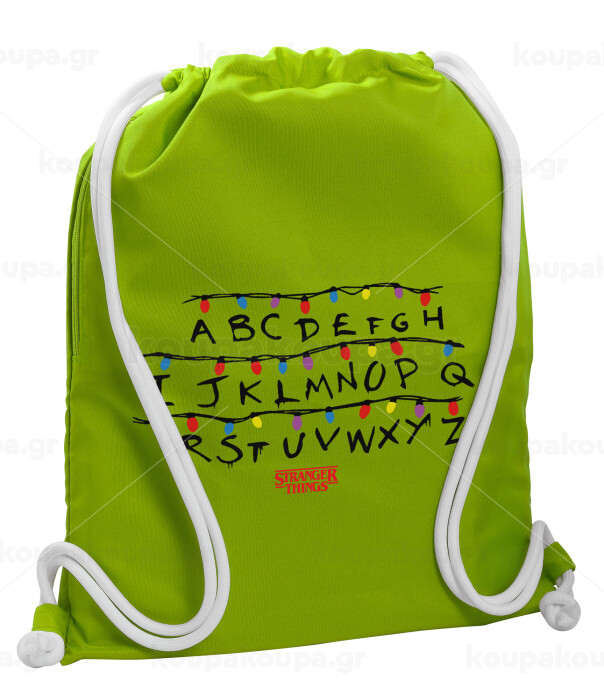 Stranger Things ABC, Τσάντα πλάτης πουγκί GYMBAG LIME GREEN, με τσέπη (40x48cm) & χονδρά κορδόνια