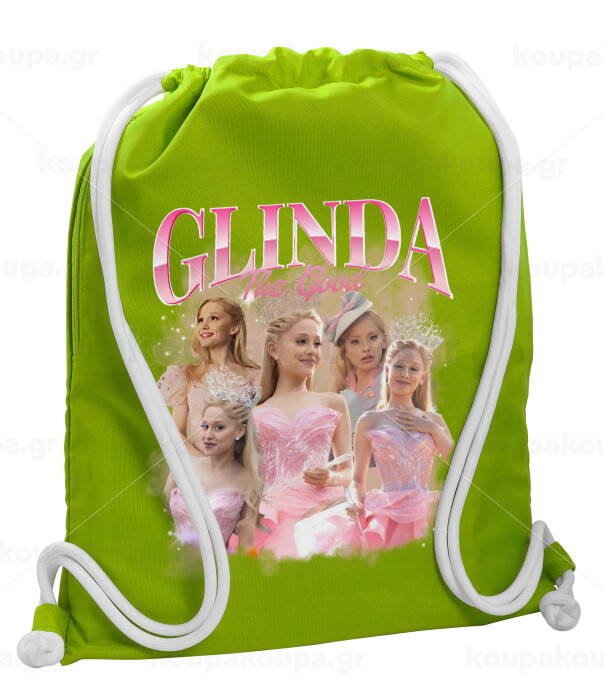 Wicked Glinda, Τσάντα πλάτης πουγκί GYMBAG LIME GREEN, με τσέπη (40x48cm) & χονδρά κορδόνια