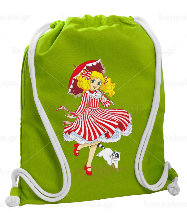 Candy, Τσάντα πλάτης πουγκί GYMBAG LIME GREEN, με τσέπη (40x48cm) & χονδρά κορδόνια