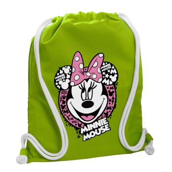 Minnie mouse, Τσάντα πλάτης πουγκί GYMBAG LIME GREEN, με τσέπη (40x48cm) & χονδρά κορδόνια