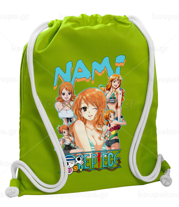 Nami One Piece, Τσάντα πλάτης πουγκί GYMBAG LIME GREEN, με τσέπη (40x48cm) & χονδρά κορδόνια