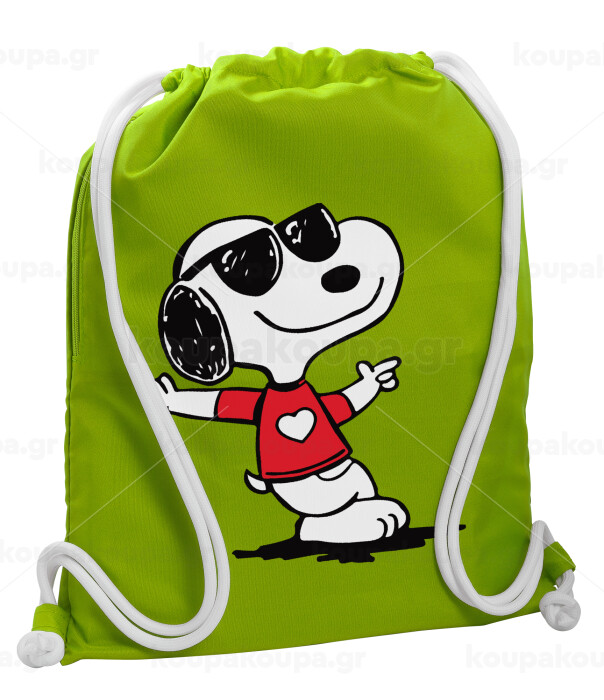 Snoopy καρδούλα, Τσάντα πλάτης πουγκί GYMBAG LIME GREEN, με τσέπη (40x48cm) & χονδρά κορδόνια