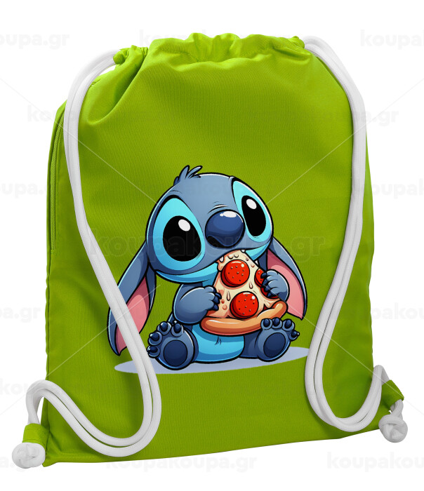 Stitch Pizza, Τσάντα πλάτης πουγκί GYMBAG LIME GREEN, με τσέπη (40x48cm) & χονδρά κορδόνια