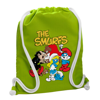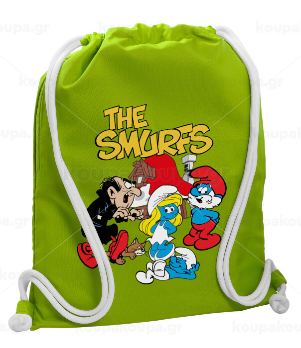 Τα στρουμφάκια, Τσάντα πλάτης πουγκί GYMBAG LIME GREEN, με τσέπη (40x48cm) & χονδρά κορδόνια