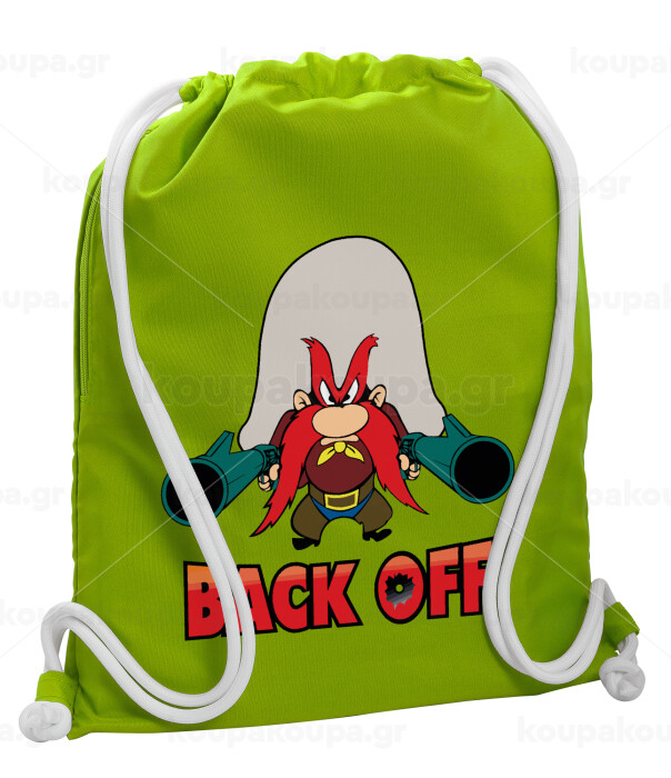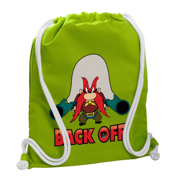 Yosemite Sam Back OFF, Τσάντα πλάτης πουγκί GYMBAG LIME GREEN, με τσέπη (40x48cm) & χονδρά κορδόνια