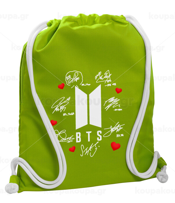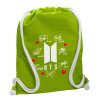 BTS signs, Τσάντα πλάτης πουγκί GYMBAG LIME GREEN, με τσέπη (40x48cm) & χονδρά κορδόνια