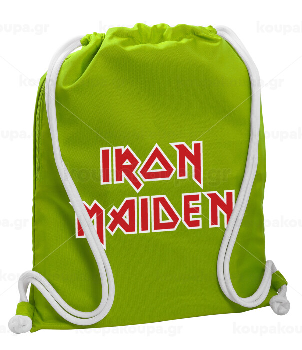 Iron maiden, Τσάντα πλάτης πουγκί GYMBAG LIME GREEN, με τσέπη (40x48cm) & χονδρά κορδόνια