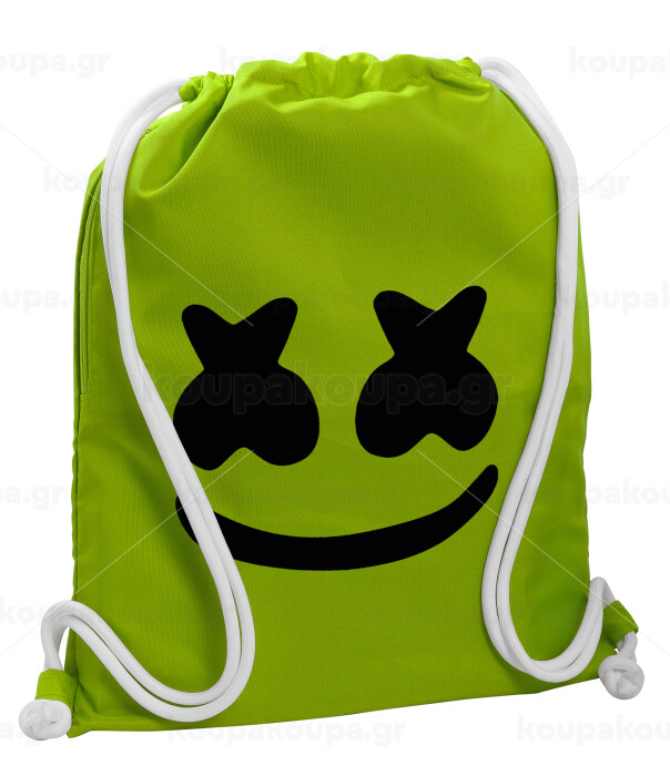 Marshmello, Τσάντα πλάτης πουγκί GYMBAG LIME GREEN, με τσέπη (40x48cm) & χονδρά κορδόνια