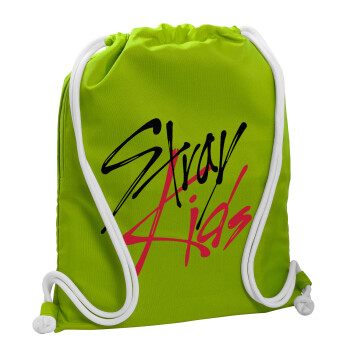 Stray Kids, Τσάντα πλάτης πουγκί GYMBAG LIME GREEN, με τσέπη (40x48cm) & χονδρά κορδόνια