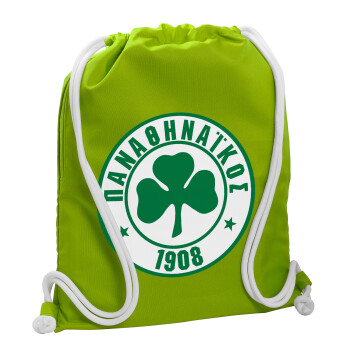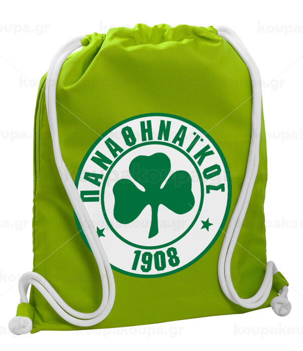 ΠΑΟ Παναθηναϊκός, Τσάντα πλάτης πουγκί GYMBAG LIME GREEN, με τσέπη (40x48cm) & χονδρά κορδόνια