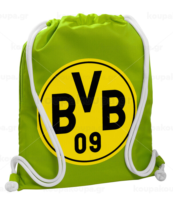 BVB Μπορούσια Ντόρτμουντ , Τσάντα πλάτης πουγκί GYMBAG LIME GREEN, με τσέπη (40x48cm) & χονδρά κορδόνια