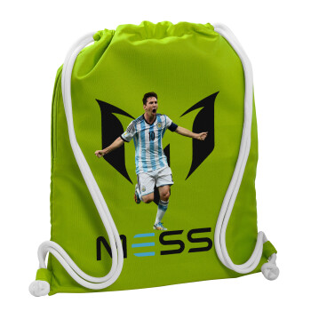 Λιονέλ Μέσι, Leo Messi, Τσάντα πλάτης πουγκί GYMBAG LIME GREEN, με τσέπη (40x48cm) & χονδρά κορδόνια