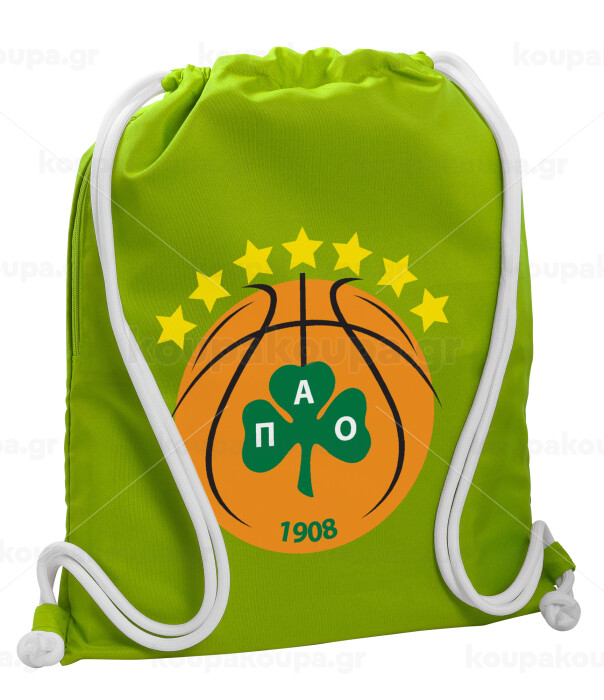 ΠΑΟ BC, Τσάντα πλάτης πουγκί GYMBAG LIME GREEN, με τσέπη (40x48cm) & χονδρά κορδόνια