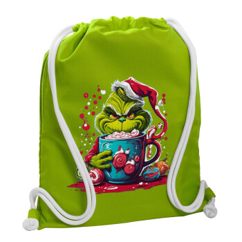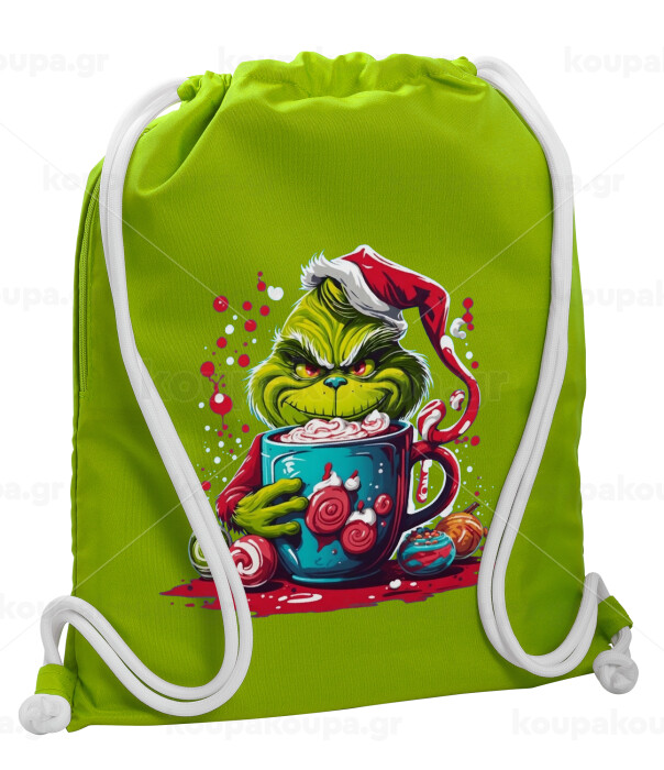 Giggling Grinchy Galore, Τσάντα πλάτης πουγκί GYMBAG LIME GREEN, με τσέπη (40x48cm) & χονδρά κορδόνια