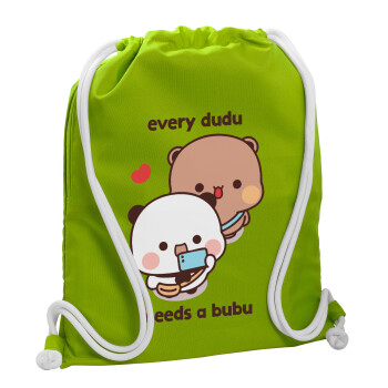 Every Dudu needs a bubu, Τσάντα πλάτης πουγκί GYMBAG LIME GREEN, με τσέπη (40x48cm) & χονδρά κορδόνια