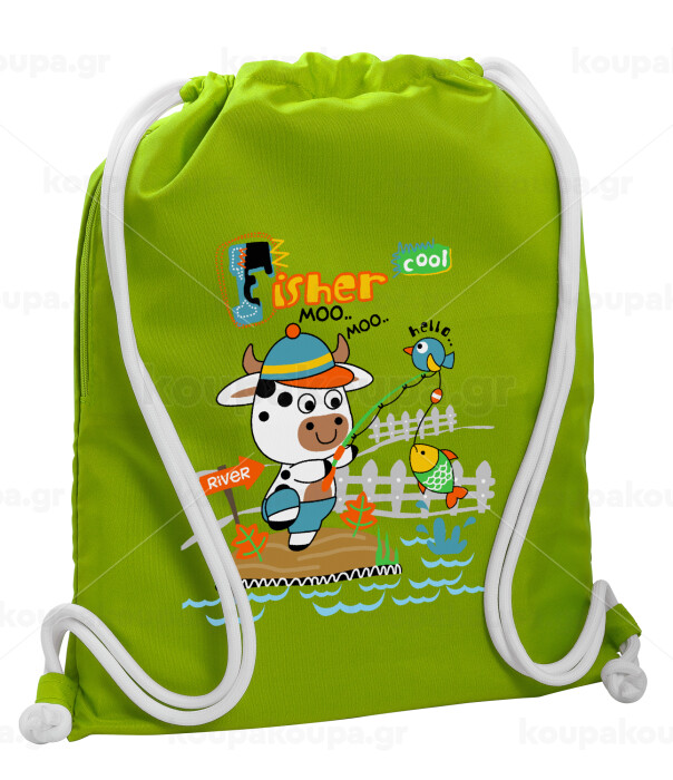 Ο μικρός ψαράς, Τσάντα πλάτης πουγκί GYMBAG LIME GREEN, με τσέπη (40x48cm) & χονδρά κορδόνια
