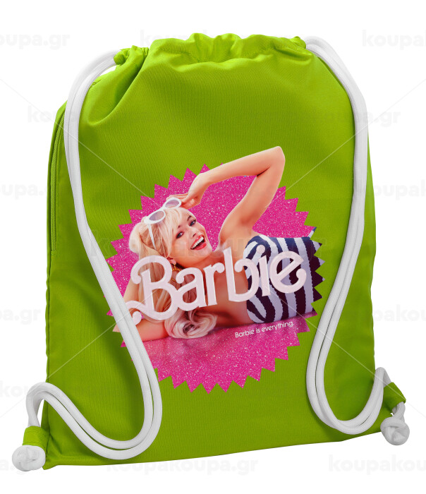 Barbie is everything, Τσάντα πλάτης πουγκί GYMBAG LIME GREEN, με τσέπη (40x48cm) & χονδρά κορδόνια
