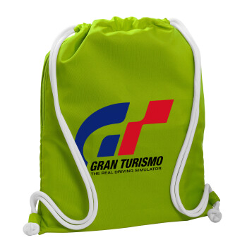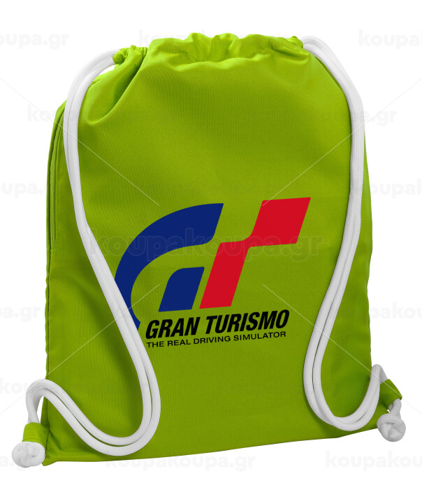 gran turismo, Τσάντα πλάτης πουγκί GYMBAG LIME GREEN, με τσέπη (40x48cm) & χονδρά κορδόνια
