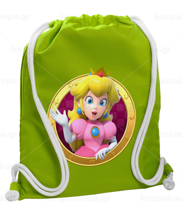 Princess Peach Toadstool, Τσάντα πλάτης πουγκί GYMBAG LIME GREEN, με τσέπη (40x48cm) & χονδρά κορδόνια