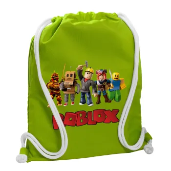 Roblox squad, Τσάντα πλάτης πουγκί GYMBAG LIME GREEN, με τσέπη (40x48cm) & χονδρά κορδόνια