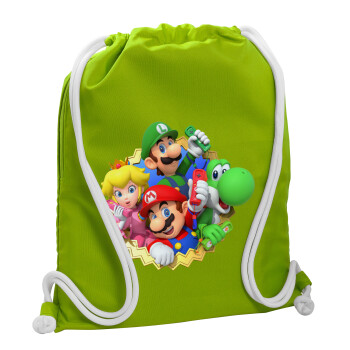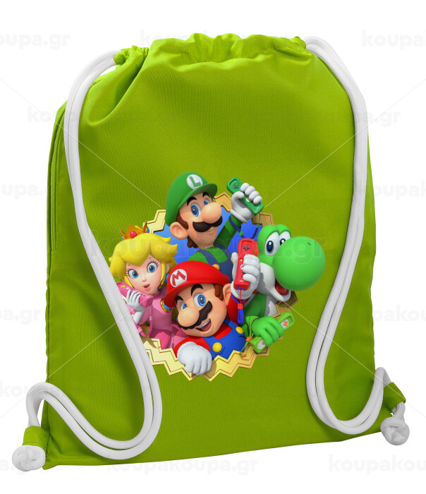 Super mario and Friends, Τσάντα πλάτης πουγκί GYMBAG LIME GREEN, με τσέπη (40x48cm) & χονδρά κορδόνια