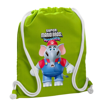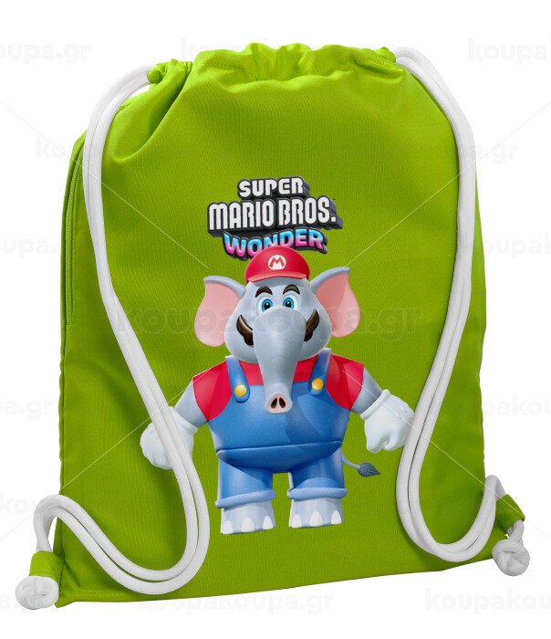 Super mario wonder, Τσάντα πλάτης πουγκί GYMBAG LIME GREEN, με τσέπη (40x48cm) & χονδρά κορδόνια