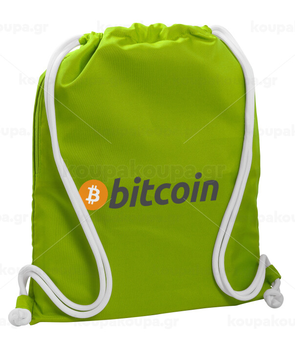 Bitcoin Crypto, Τσάντα πλάτης πουγκί GYMBAG LIME GREEN, με τσέπη (40x48cm) & χονδρά κορδόνια