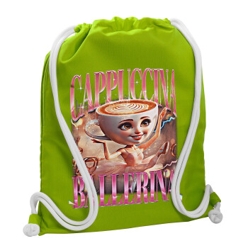 BALLERINA CAPUCHINA FUNK, Τσάντα πλάτης πουγκί GYMBAG LIME GREEN, με τσέπη (40x48cm) & χονδρά κορδόνια