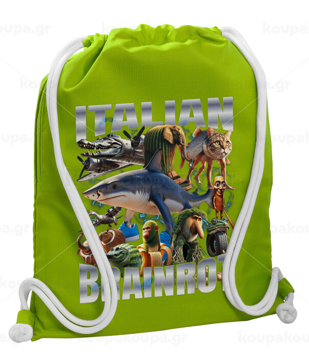Italian Brainrot, Τσάντα πλάτης πουγκί GYMBAG LIME GREEN, με τσέπη (40x48cm) & χονδρά κορδόνια