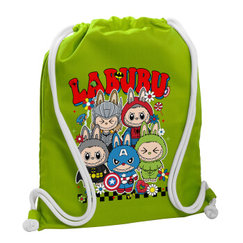 Labubu superheroes, Τσάντα πλάτης πουγκί GYMBAG LIME GREEN, με τσέπη (40x48cm) & χονδρά κορδόνια