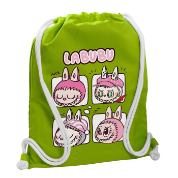 Labubu pink, Τσάντα πλάτης πουγκί GYMBAG LIME GREEN, με τσέπη (40x48cm) & χονδρά κορδόνια