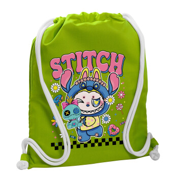 Labubu Stitch, Τσάντα πλάτης πουγκί GYMBAG LIME GREEN, με τσέπη (40x48cm) & χονδρά κορδόνια