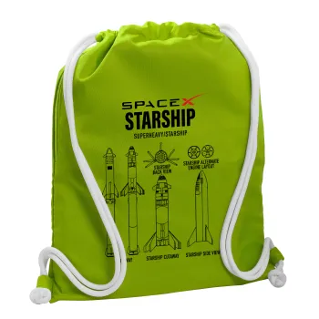 Space X, Τσάντα πλάτης πουγκί GYMBAG LIME GREEN, με τσέπη (40x48cm) & χονδρά κορδόνια