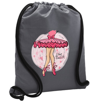 I Love Ballet, Τσάντα πλάτης πουγκί GYMBAG ΓΚΡΙ, με τσέπη (40x48cm) & χονδρά κορδόνια