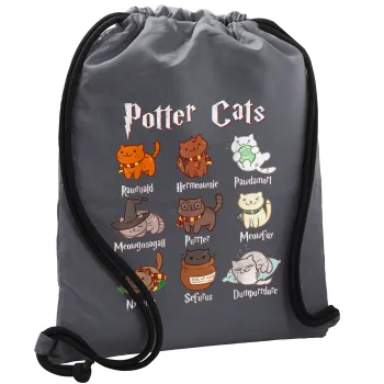 Potter Cats, Τσάντα πλάτης πουγκί GYMBAG ΓΚΡΙ, με τσέπη (40x48cm) & χονδρά κορδόνια