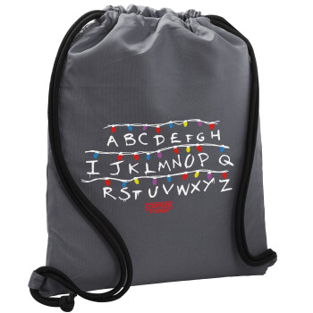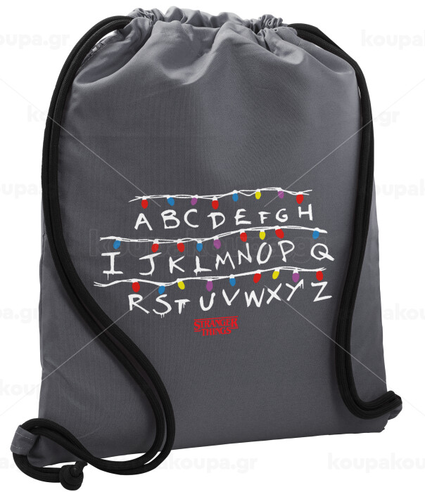 Stranger Things ABC, Τσάντα πλάτης πουγκί GYMBAG ΓΚΡΙ, με τσέπη (40x48cm) & χονδρά κορδόνια