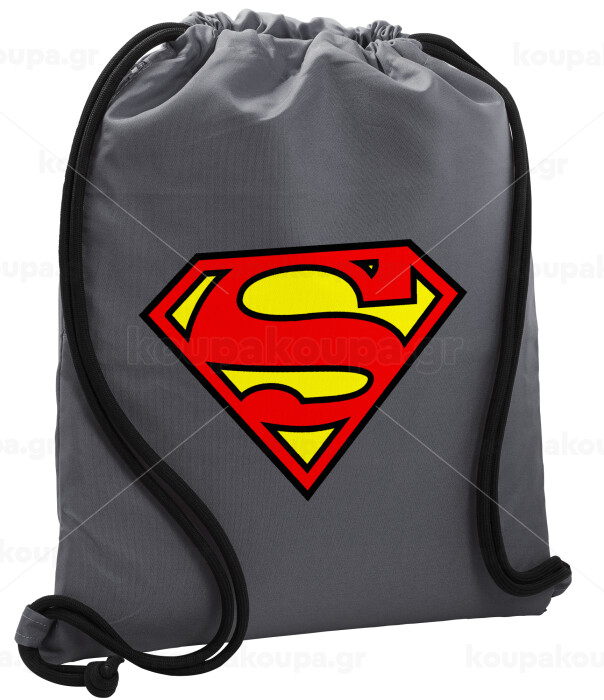 Superman vintage, Τσάντα πλάτης πουγκί GYMBAG ΓΚΡΙ, με τσέπη (40x48cm) & χονδρά κορδόνια