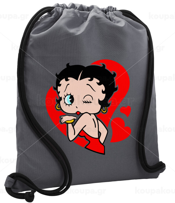 Betty Boop, Τσάντα πλάτης πουγκί GYMBAG ΓΚΡΙ, με τσέπη (40x48cm) & χονδρά κορδόνια