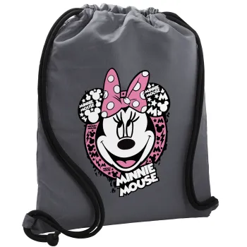 Minnie mouse, Τσάντα πλάτης πουγκί GYMBAG ΓΚΡΙ, με τσέπη (40x48cm) & χονδρά κορδόνια