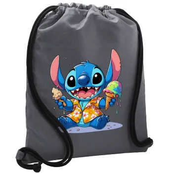 Stitch Ice cream, Τσάντα πλάτης πουγκί GYMBAG ΓΚΡΙ, με τσέπη (40x48cm) & χονδρά κορδόνια