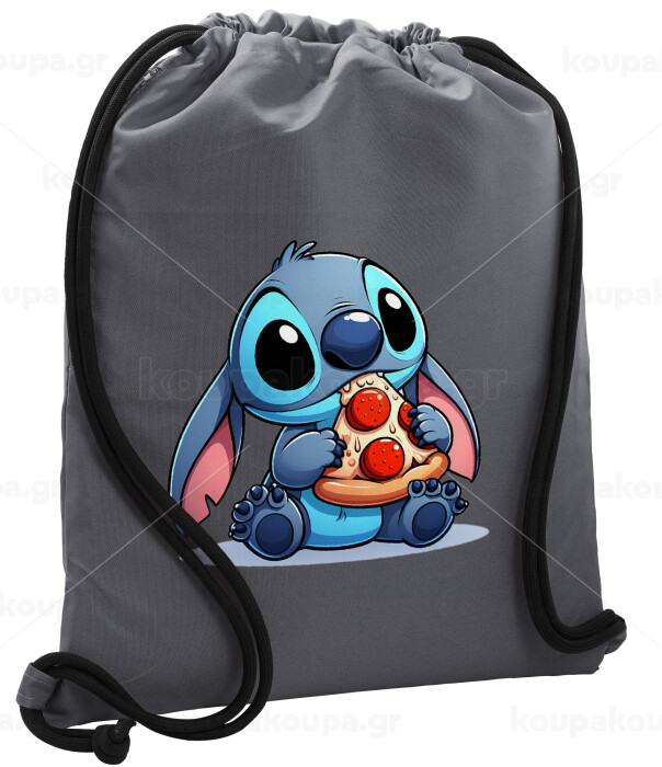 Stitch Pizza, Τσάντα πλάτης πουγκί GYMBAG ΓΚΡΙ, με τσέπη (40x48cm) & χονδρά κορδόνια